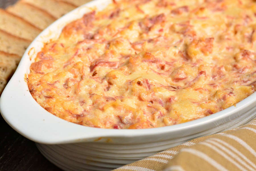 ¿Qué es un Reuben Dip? En primer lugar, es enviado del cielo! Es una deliciosa combinación de queso crema mezclado con carne en conserva, chucrut, queso suizo rallado y salsa mil islas. Esta deliciosa mezcla se cocina hasta que esté caliente y pegajosa.