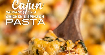 Esta pasta de pollo y espinacas con salchichas cajún olía increíble mientras estaba horneada. ¡No podíamos esperar para cavar! ¡Todo lo que necesitas es una ensalada pequeña y un rollo de ajo y la cena está lista!