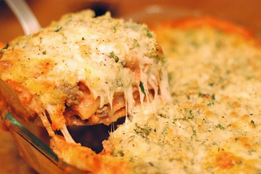 ~Salchicha italiana y ziti de 5 quesos al horno~