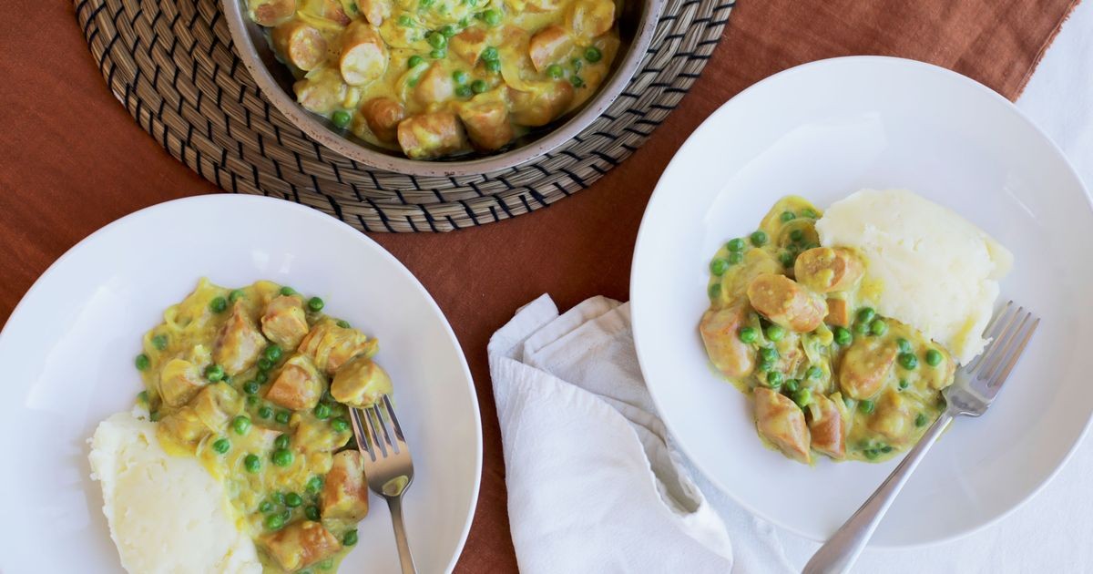 Servir con arroz o puré de patatas. Puedes agregar tanto curry como quieras.