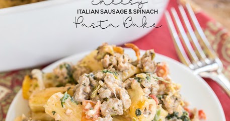 Esta salchicha italiana horneada con queso y espinacas olía increíble mientras estaba en el horno. ¡No podíamos esperar para cavar! ¡Todo lo que necesitas es una ensalada pequeña y un rollo de ajo y la cena está lista!