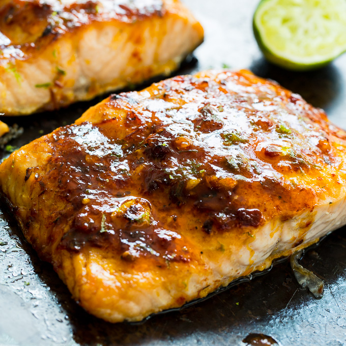 El salmón chipotle es un poco dulce y picante y es una cena sencilla y saludable. Los filetes de salmón se bañan en una salsa de chipotle ahumado endulzada con miel y luego se asan a la parrilla. La combinación de sabores de miel, limón y chipotle es muy sabrosa. ¡Esta comida puede estar en la mesa en menos de 20 minutos!