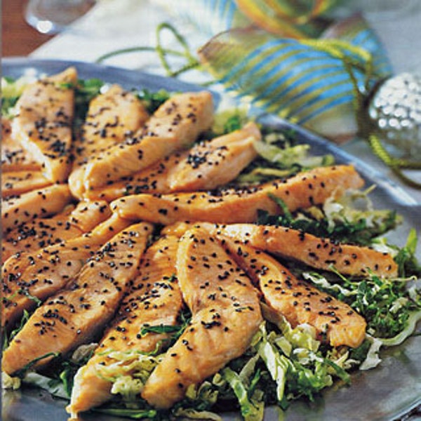 - Mientras tanto, cocina la marinada reservada en una cacerola mediana a fuego medio hasta que se reduzca a 1 taza, aproximadamente 15 minutos. Pincelar el pescado con la marinada. (Se puede preparar con 1 día de anticipación. Cubra y refrigere. Deje reposar a temperatura ambiente 30 minutos antes de servir). Espolvoree con semillas de sésamo; Servir con ensalada de col.