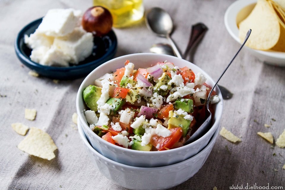 Salsa de aguacate y queso feta – ¡El aguacate, el tomate y el queso feta se combinan para crear una salsa espesa, sabrosa y deliciosa!