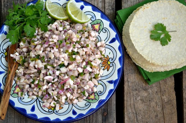 Para este primero de los posts de Very Very, todos los blogueros participantes están preparando la salsa de champiñones. Yo considero salsa ser un grupo de alimentos básicos: lo hice con todo tomate cereza por Cantalupo, naranjas, toronja Y mangas, pero debo admitir que también era escéptico al respecto. No soy fanático de los champiñones crudos, pero descubrí que el jugo de lima agria “cocina” los champiñones como lo hace el pescado crudo en el ceviche. Cuanto más lo dejes sentado, incluso de noche, mejor. El sabor resultante es muy similar a la salsa normal, pero con una textura un poco más firme debido a los champiñones. Realmente lo disfruté y mi esposo y yo encontramos muchas maneras de comerlo.