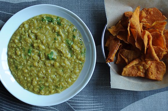 Un dip que también puede servir como guarnición sustanciosa o como sopa vigorizante, el plato safenervine está lleno de sorpresas felices. Nos encanta la técnica de desnatar la manteca de coco de la parte superior de la leche de coco para saltear la cebolla, el ajo y el jengibre, y el aceite de especias picante agrega un final vibrante. No se alarme cuando sus lentejas “rojas” se derritan en una masa amarilla mantecosa: el cilantro aporta un toque verde y un elemento de frescura. La segunda vez, añadimos un chorrito de jugo de limón para completar la salsa y nos gustó mucho el resultado. – A&M: los editores