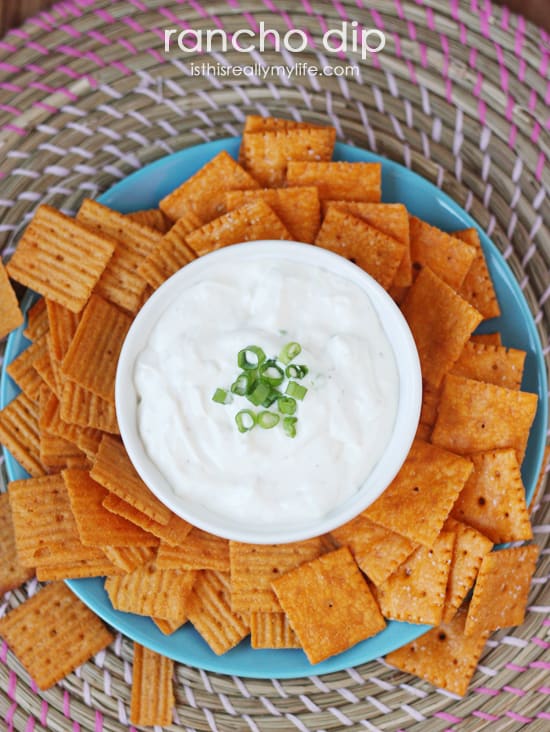 Cuando estás sirviendo un dip, quieres una papa frita o una galleta que le haga justicia. Los Cheez-It Grooves y Cheez-It Big Crackers son grandes, perfectos para este aderezo ranchero. No quería discutir con el queso azul y el ajo en la salsa, así que opté por el clásico sabor a queso para ambos.