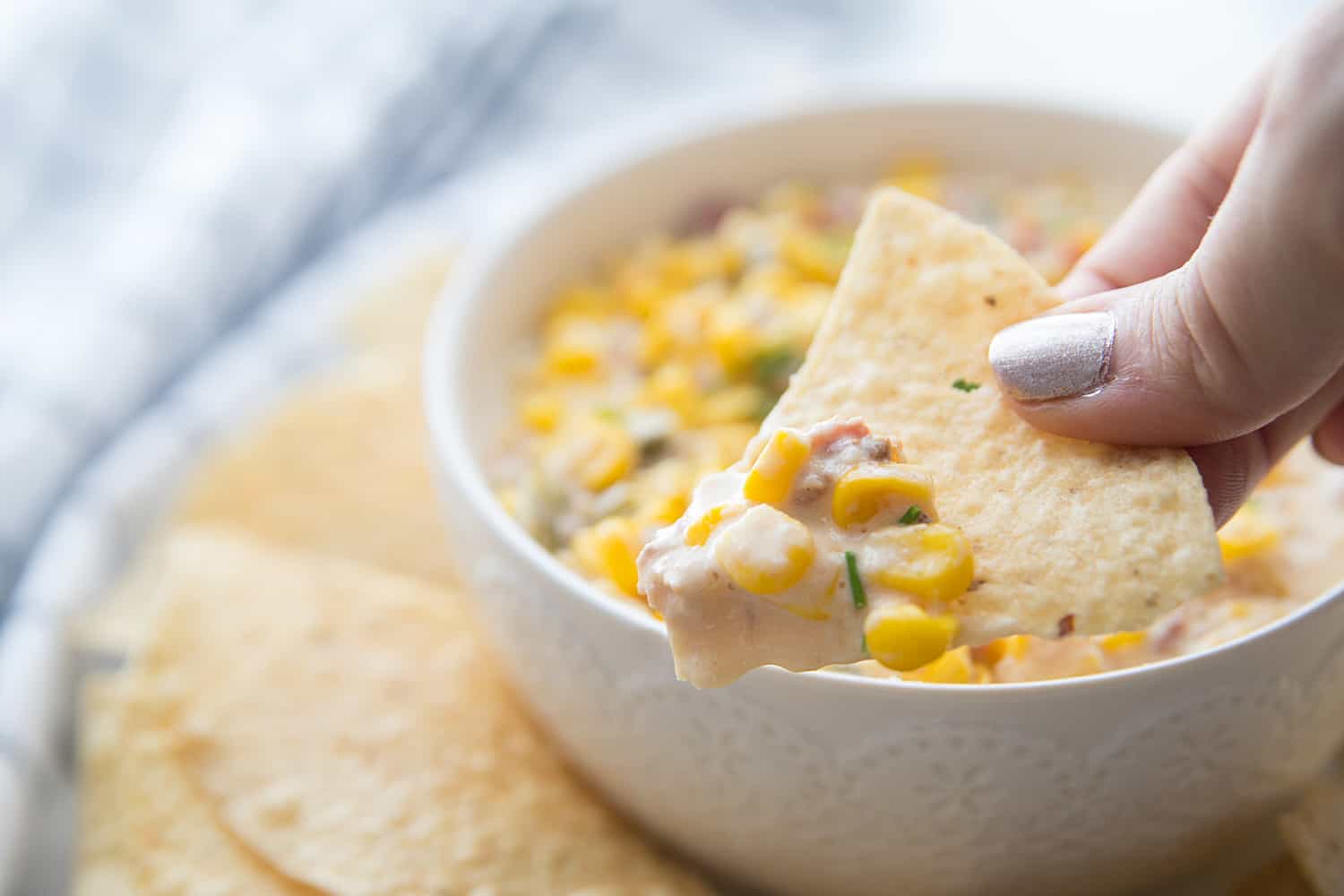 ¿Está buscando un aperitivo para el día del juego que entusiasme a familiares, amigos y fanáticos? ¡Sirve una olla de cocción lenta rellena con esta salsa picante de queso y maíz!