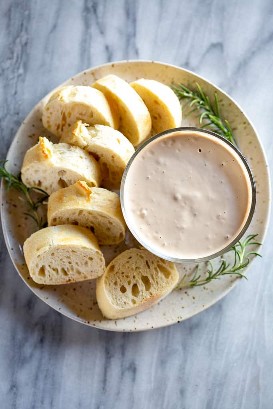 ¡Nuestro maravilloso amigo de la familia es un genio en la cocina y siempre fue un día feliz crecer ofreciendo cena sobrante para que el clan Bailey probara! Originalmente inventó esta salsa como una versión de imitación de nuestra salsa de pan Grappa favorita en Main Street en Park City. ¡Es tan audaz y sabroso! Desde entonces se ha convertido en un refrigerio básico para cenas familiares, fiestas o cualquier ocasión.