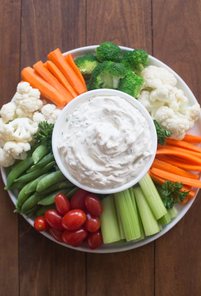 Algunas de mis verduras crudas favoritas para mojar incluyen guisantes (¡YUM!), rábanos, tomates, pepinos, apio, coliflor, brócoli, pimientos y aceitunas.