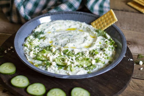 La deliciosa salsa griega a base de yogur, pepino, ajo y eneldo es rápida y fácil de preparar y es el mejor condimento de barbacoa de verano.