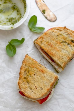 - ¿No tienes un procesador de alimentos? ¡Solo compre un pesto comprado en la tienda! Pero realmente, si puede encontrar una manera de hacer su propio pesto, este sándwich realmente lo lleva a otro nivel.