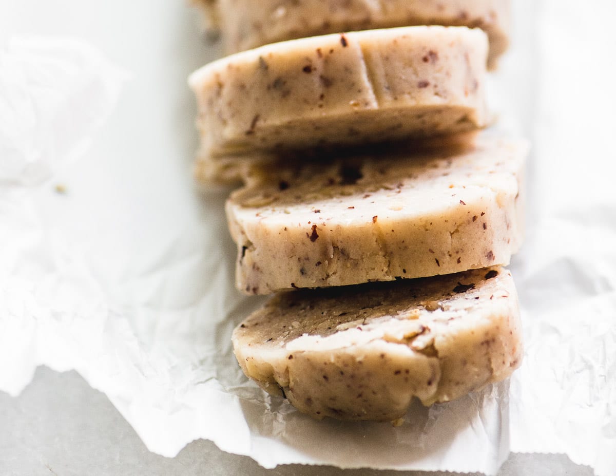 Convierta la masa en papel pergamino y dóblela con las manos. Forme la masa en un tronco sólido, de aproximadamente 11 “de largo. Enfríe la masa durante al menos una hora.