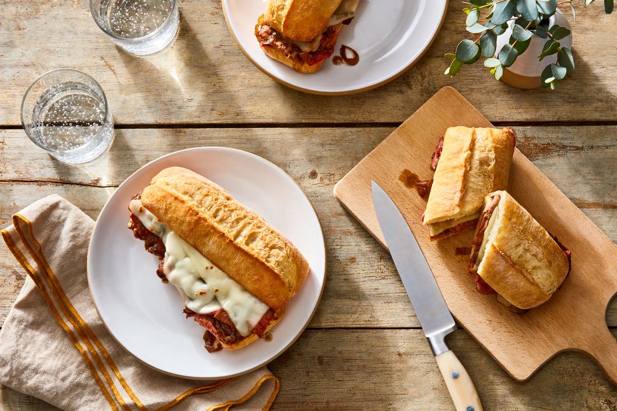 Tiempo de emparedado: unte mayonesa o mostaza de rábano picante en todos los panecillos inferiores y adorne cada uno con aproximadamente 4 onzas de carne de res en rodajas, ¼ de taza de pasta de ajo y cebolla en su jugo y 2 rebanadas de queso provolone o suizo. Asa las mitades inferiores de los sándwiches durante 2 minutos o hasta que el queso se derrita. Una vez derretidos, retíralos del horno y decora los sándwiches con las mitades restantes del sándwich.