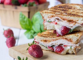 Hay tantos sabores increíbles en este panini de fresa, queso brie y pavo. Rebanadas frescas de pan francés con gelatina de pimienta
