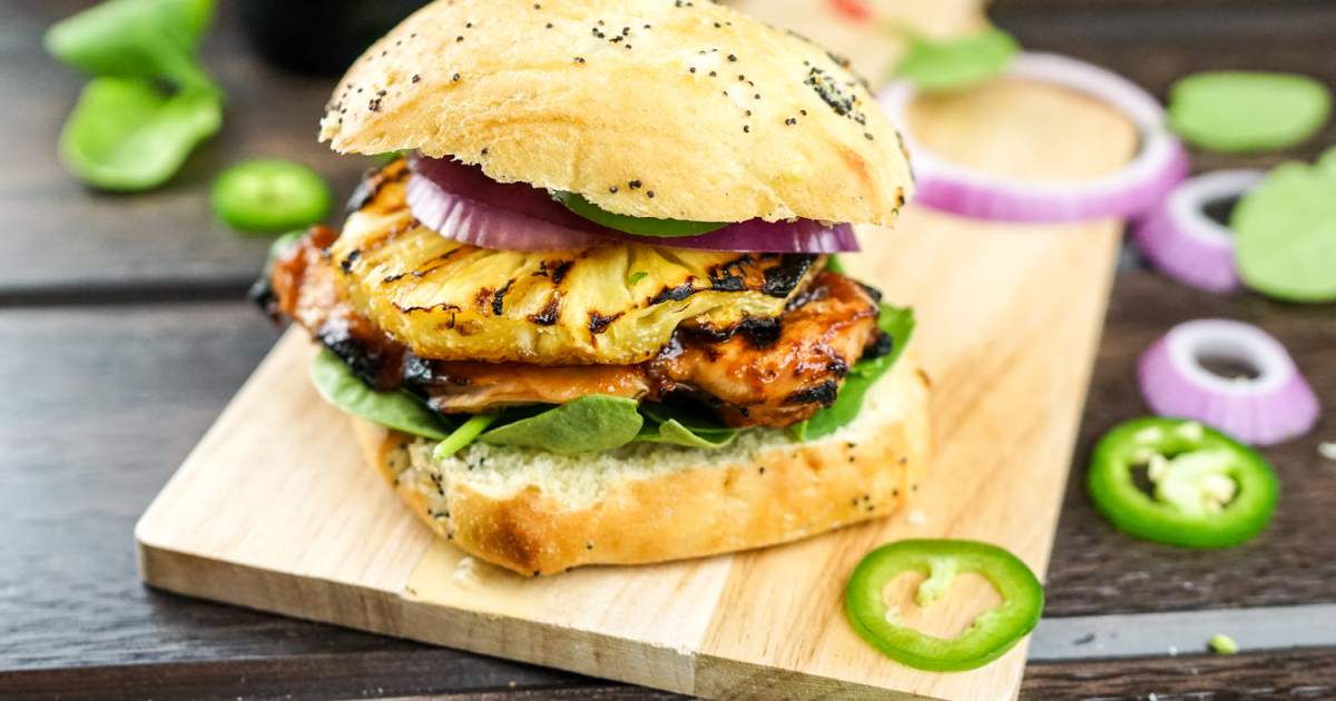 ¡Los sándwiches de pollo hawaiano a la parrilla se convertirán rápidamente en su nuevo sándwich de pollo favorito y estarán rellenos con salsa barbacoa de piña casera, pollo a la parrilla jugoso, piña a la parrilla, cebolla roja y más! Sirva con papas rojas a la parrilla o brócoli a la parrilla para una comida deliciosa y saludable.