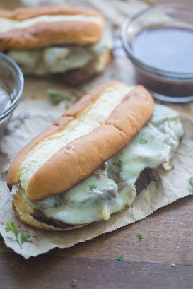 - Hornee en el horno a fuego alto hasta que el queso se derrita y el pan esté dorado. Sirva con el au jus reservado.