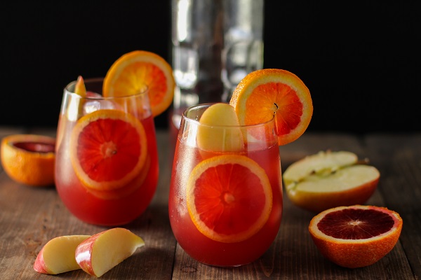 Sangría con jugo de granada, naranjas sanguinas y manzana…