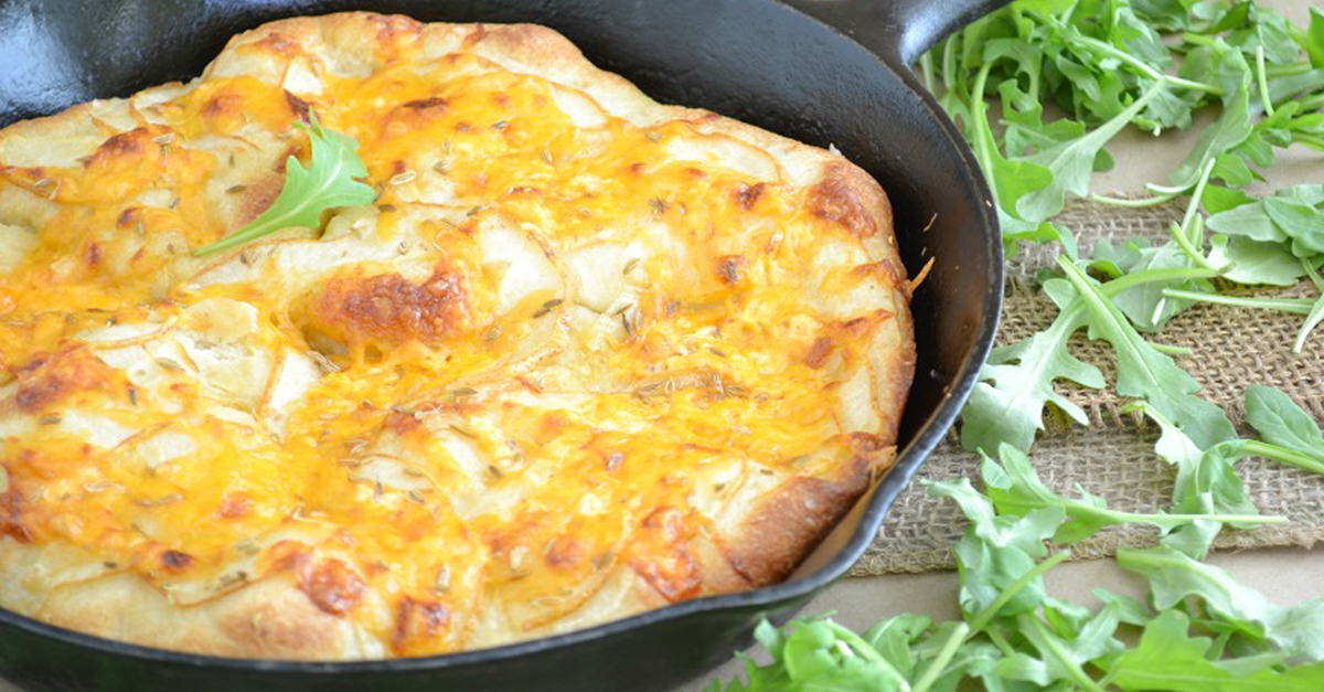 Espero que disfrutes esta receta de pan de pizza con manzana y queso cheddar.