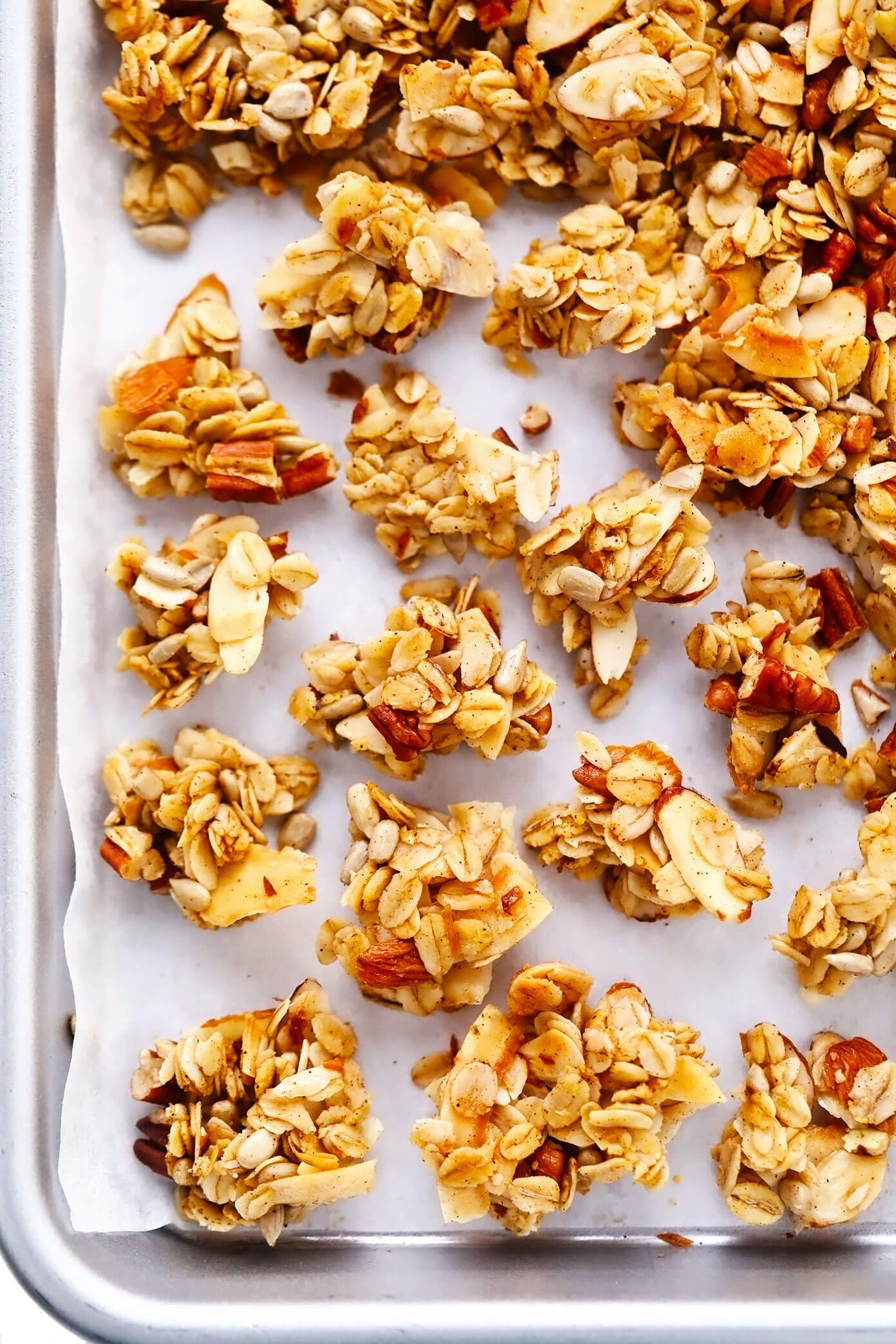 Por supuesto, eres totalmente libre de desmenuzar esta granola en pedazos pequeños si lo deseas. Pero si está interesado en clústeres más grandes, estos son mis mejores consejos para hacerlo realidad.