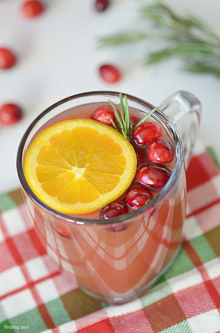 Si lo necesitas durante las fiestas, te recomiendo ofrecer ramitas de romero como guarnición para darle realmente el aspecto de una sidra navideña. Haga una buena bebida festiva con arándanos, rodajas de naranja y ramitas verdes.