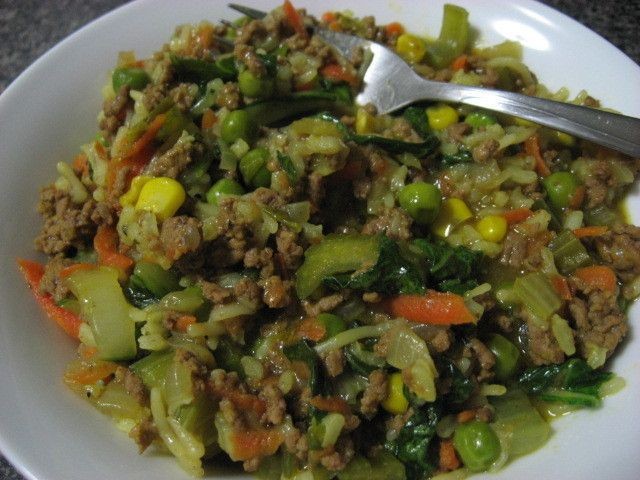 Se pueden usar 500 g de pollo en rodajas finas en lugar de carne molida para el chow mein de pollo. La carne de cerdo se puede usar de la misma manera.