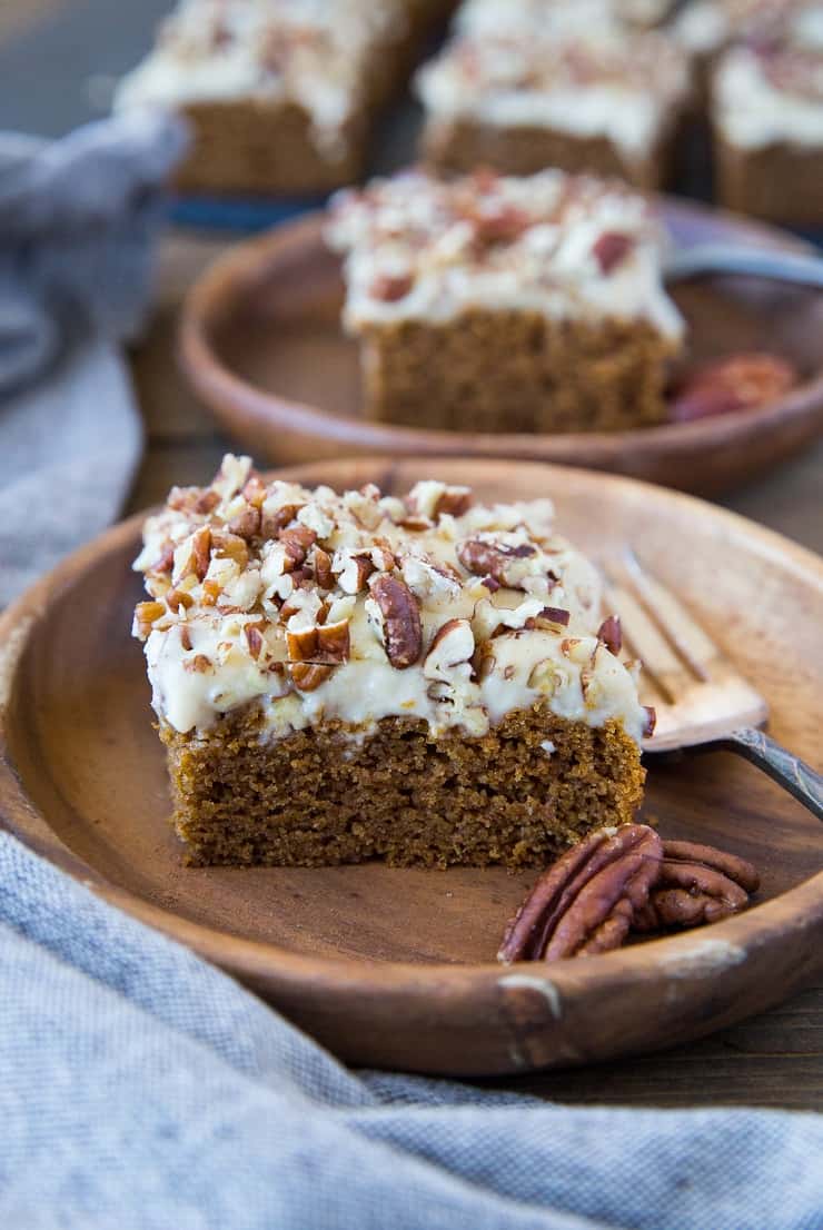 Delicioso pastel de calabaza húmedo hecho sin granos, sin huevos y sin lácteos. ¡Este pastel vegano de calabaza paleo es lo suficientemente saludable como para comerlo en el desayuno!