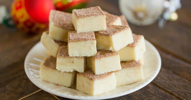 Esta base de dulce de chocolate blanco cremoso estĂĄ recubierta con un glaseado de azĂșcar y canela para recrear el sabor de una de las galletas navideñas mĂĄs populares: los snickerdoodles. Si eres fanĂĄtico de esas galletas de azĂșcar de canela crujientes y brillantes (y realmente, ÂżquiĂ©n no?), ÂĄTe encantarĂĄ este dulce de azĂșcar!