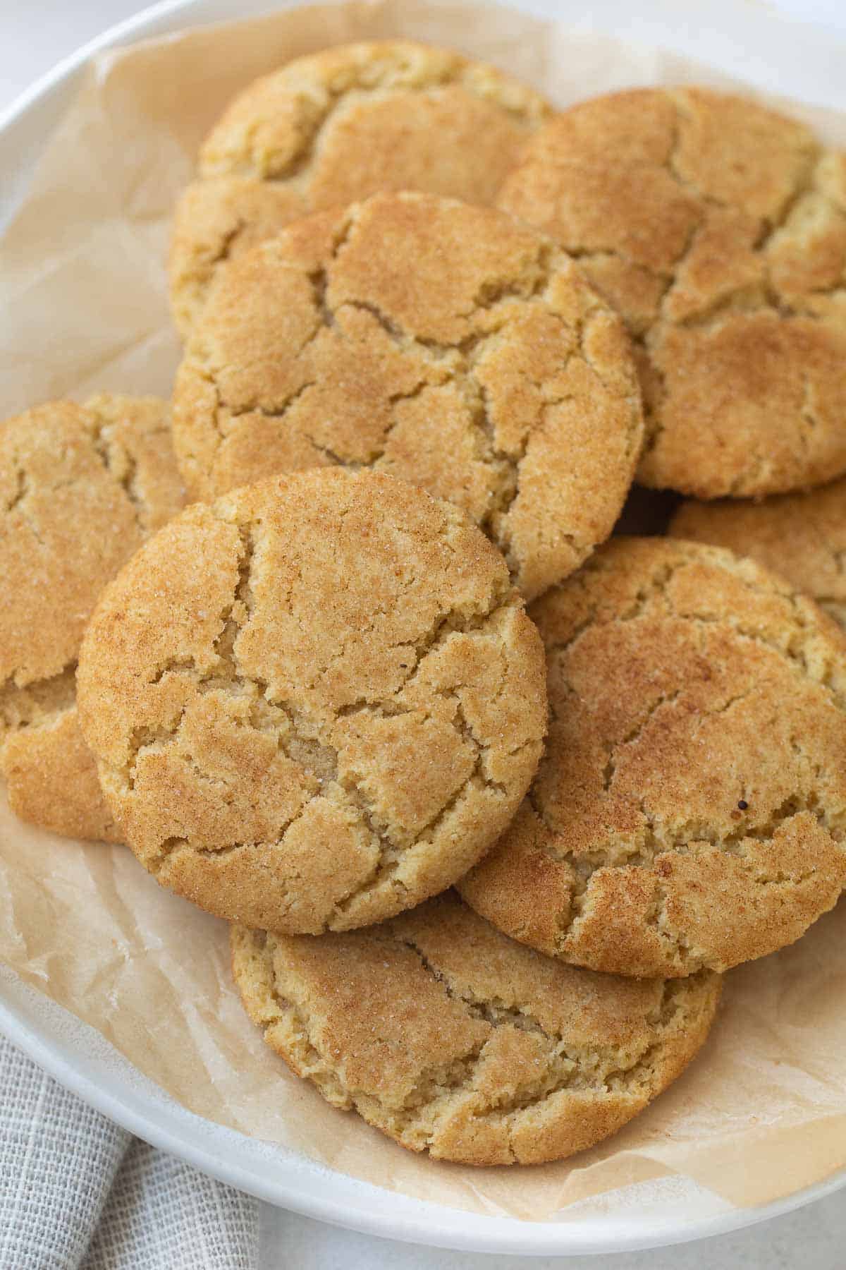 ¡Snickerdoodles suaves y masticables sin gluten con bordes dorados crujientes! La mantequilla dorada y algunos trucos más le dan a estas galletas un delicioso sabor y textura.