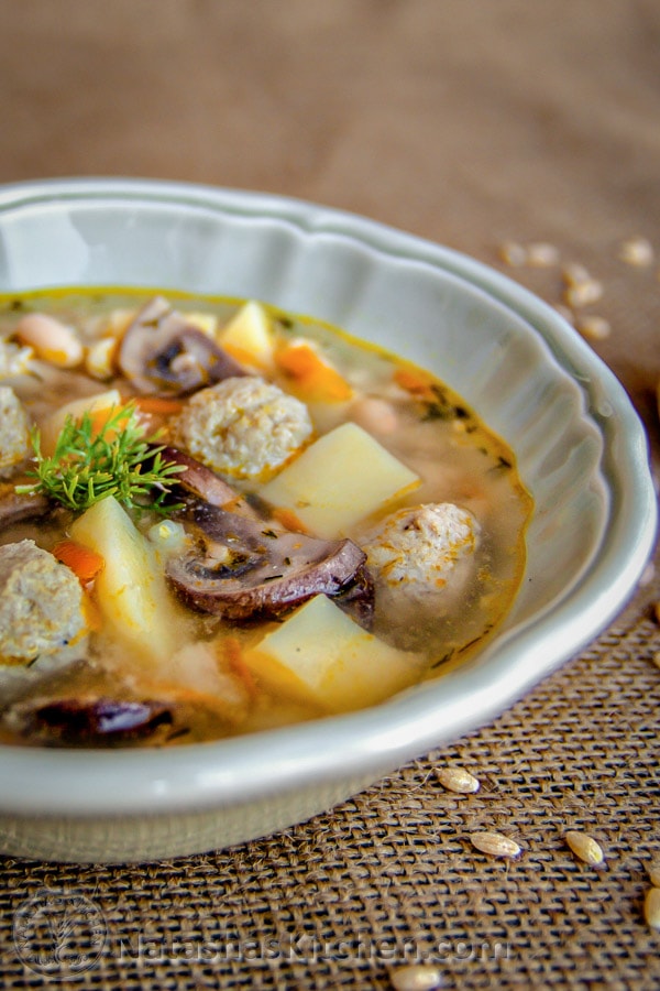 sopa de albóndigas de pavo