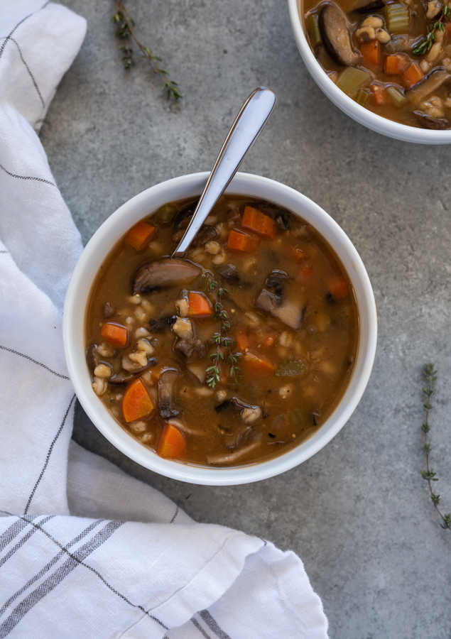 La sopa de champiñones y cebada es una rica y reconfortante sopa rellena de champiñones, verduras y mucha cebada perlada. ¡Incluye instrucciones de olla instantánea!
