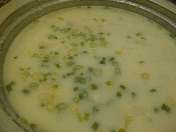 Coloque la cebolla, el apio, el ajo, el maíz, el caldo y la soya en una olla grande.