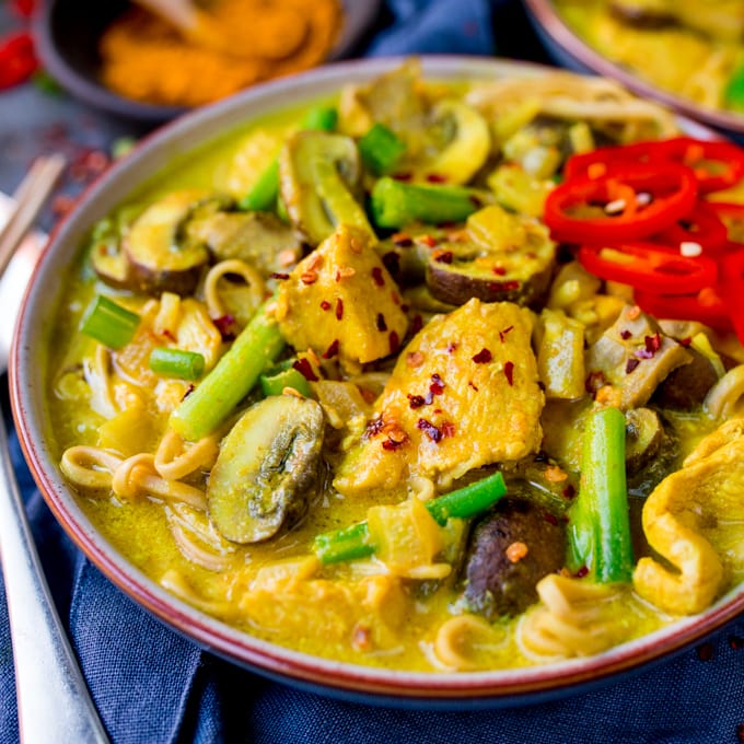 Un giro saludable en la sopa de azafrán, esta es mi sopa de pollo con fideos con azafrán, es una comida reconfortante y satisfactoria, ¡lo suficiente para la cena!