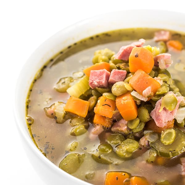 Esta receta de sopa de guisantes en la estufa tarda unos minutos en prepararse y puede hervir a fuego lento toda la tarde. Picante, delicioso y rico en fibra y proteína.