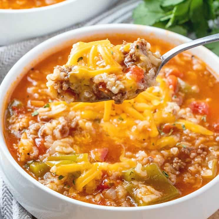 ¡La sopa instantánea de pimientos rellenos es una deliciosa sopa rellena de carne molida, arroz, pimientos y cebollas en un caldo sazonado a base de tomate! .wprm -cipe-rating .wprm-rating-star.wprm-rating-star-full svg * {fill: #fff} Curso: Plato principal, Cocinar sopa: Americano Palabra clave: Sopa instantánea de pimientos rellenos Tiempo de preparación: 20 minutos Tiempo de cocción : 4 minutos Liberación natural: 8 minutos Tiempo total: 32 minutos Porciones: 6 calorías: 306kcal
