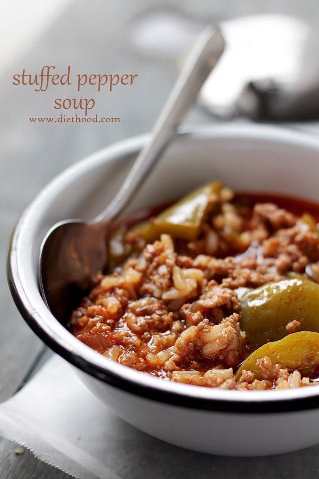 Sopa picante de pimientos rellenos, reconfortante, picante e increíblemente sabrosa.