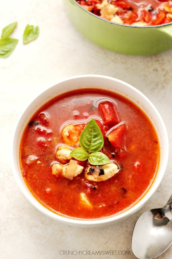 No importa cuán ocupados estén tus días, cuántos estómagos hambrientos tengas que alimentar; una sopa abundante es siempre una buena idea. Sobre todo porque se reúne en tan solo 30 minutos o menos. Todo lo que necesitas es pollo, chile chipotle (en salsa de adobo), unas cuantas latas de tomates cortados en cubitos (usé del tipo asado al fuego), cebolla y ajo y lleva todo a ebullición. También puede usar tomates frescos si tiene algunos a la mano, solo agregue la salsa de tomate. Adorne con albahaca fresca picada y tal vez incluso una cucharada de crema agria para enfriar el calor.