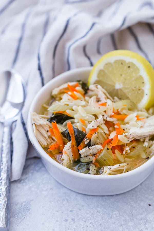 Esta sopa instantánea de pollo con cebada y limón es un giro en una clásica sopa de fideos con pollo. A veces me aburro tanto con la sopa de fideos con pollo que fue divertido mezclarla un poco con esta receta.