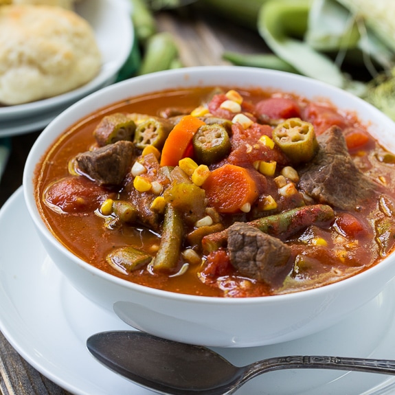 La sopa de res con verduras del sur a la antigua es como un tazón lleno de comodidad. ¡Tanto sabor! A medida que nos acercamos a los últimos días del verano, la sopa de verduras es la manera perfecta de consumir los últimos restos de la huerta de verano.