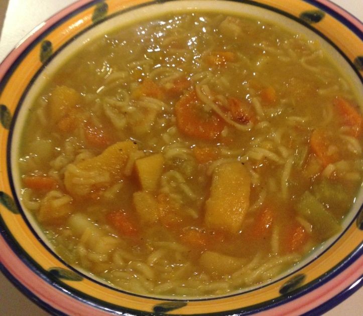 Esta receta depende del polvo GF que uses. El puré de verduras espesa muy bien la sopa. Lo mejor de esta receta y lo que hago es que simplemente selecciono la cacerola para que coincida con la cantidad de sopa que quieres y ⅔ la relleno con las verduras que quieras, lo que sea. La cantidad de caldo que necesitas es la que cubre las verduras otros 3 cm. Uso caldo de buena calidad, uso suprema de Vegeta pero pollo o carne de res está bien. En lugar de cilantro, puedes usar cualquier hierba fresca o seca que te guste, como tomillo o hierbas mixtas para variar. Pero es rápido y puede estar sobre la mesa en menos de una hora, sin importar cuánto ganes.