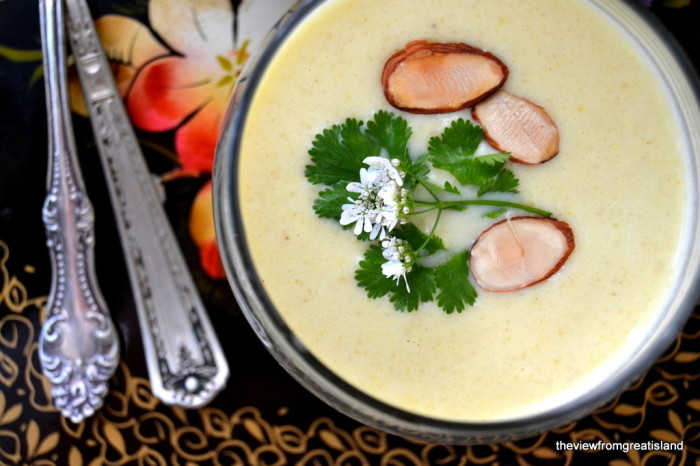 Casi cualquier tipo de fruta o verdura que se te ocurra se puede convertir en una sopa fría. Y aunque el gazpacho, que me encanta, es una excepción, creo que la mayoría de las sopas frías salieron bien. Las zanahorias, las papas, las remolachas, las calabazas de invierno o de verano, los espárragos y los tomates pueden ser maravillosos aperitivos calientes. En el lado un poco más exótico están las sopas de cereza, aguacate, melón y otras frutas. Algunos son brebajes de la nueva era, pero la mayoría de las culturas tienen sopas frías en su tradición culinaria. Esto tiene una influencia india.