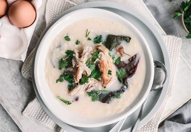 Cuando la sopa esté espesa, sirva y coloque un poco de pollo desmenuzado encima de cada tazón con una cantidad generosa de perejil picado.