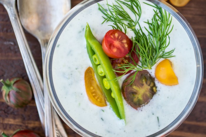 La mayoría de las culturas alrededor del mundo tienen una versión de esta sopa. Para variar, puedes usar crema en lugar de yogur, menta fresca en lugar de eneldo, o jugo de limón o lima para hacer el trabajo del vinagre… la sopa solo necesita un poco de acidez para estimular la cremosidad del yogur.