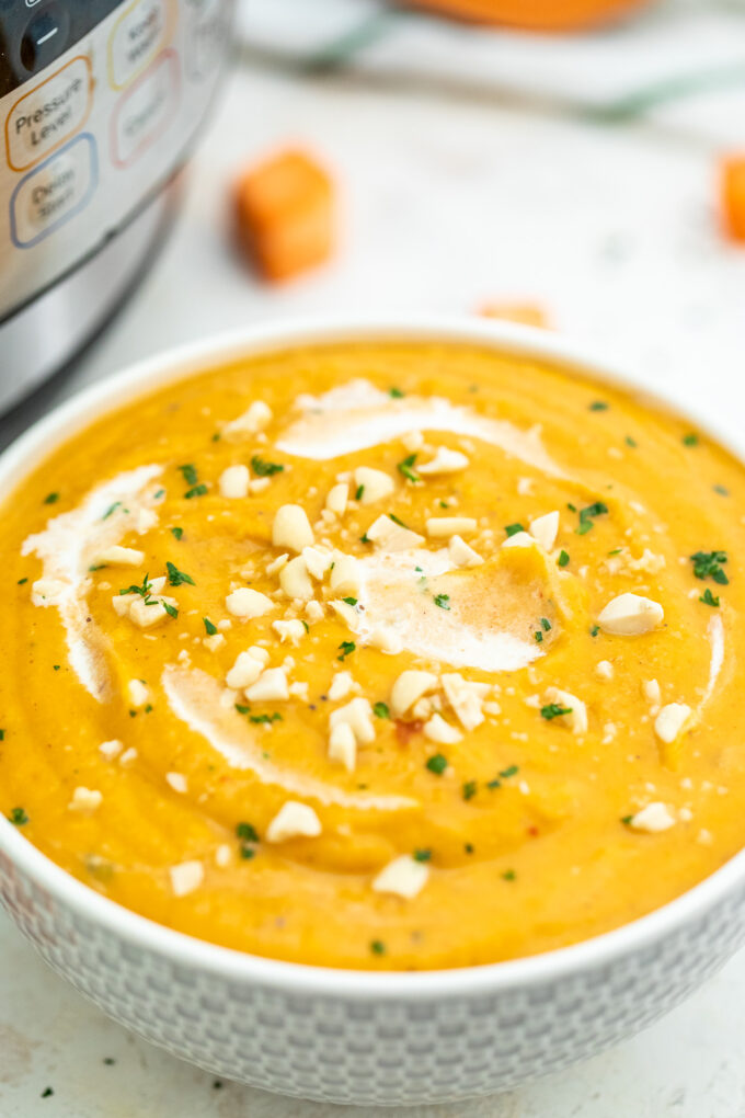 Instant Pot Sweet Potato Soup es algo que puedes preparar rápidamente, pero te gusta pasar mucho tiempo preparándolo. Lo que me gusta de hacer esto es que puedo cocinar mientras hago algo en el horno o en la estufa.