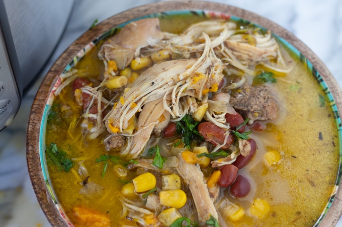 Realmente depende de la receta cuánto tiempo se cocinará la sopa. Solo he estado cocinando sopas durante 10 minutos y algunas hasta 30. Me gusta cocinar esta sopa a los 15 para asegurarme de que mis sabores se desarrollen y mis muslos se cocinen hasta el punto de desmoronarse cuando la sopa esté lista.