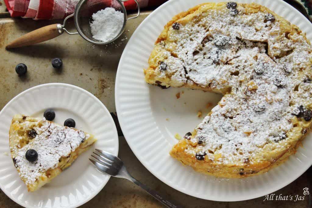 Para nuestra familia el pan es sagrado y nunca se tira. Baka solía hacer una versión salada de este soufflé de pan que todavía me gusta tanto como antes. Esta versión del soufflé de pan dulce es similar al budín de pan que muchos prefieren. La mejor parte es que puedes agregar ingredientes a esta receta y hacerla tuya. Puede pasar rápidamente de un plato de desayuno simple a un postre fabuloso.