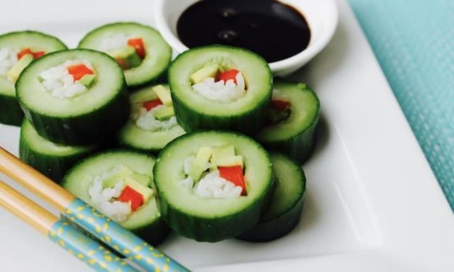Puedes rellenar tu sushi de pepino con lo que quieras, las zanahorias o el atún también pueden funcionar.