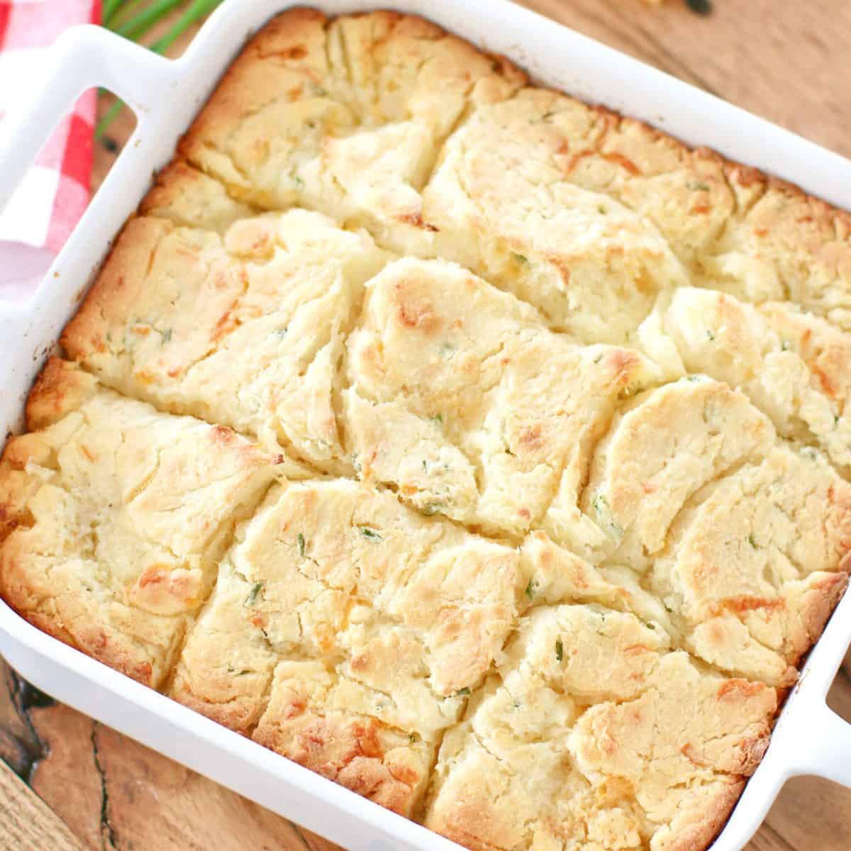 Si eres fanático de las galletas Cheddar Bay de Red Lobster, ¡te encantará esta receta! Ni siquiera necesitas un cortador de galletas. Esta es una manera súper rápida y fácil de hacer esas lindas galletas de ajo y queso cheddar. Estas galletas de baño de mantequilla con queso cheddar y ajo se basan en mi receta súper popular de galletas de mantequilla (también conocidas como galletas de baño de mantequilla). Acabo de agregar un poco de queso cheddar, ajo en polvo y cebollín (que son opcionales). ¡No creerás el increíble olor de estas galletas mientras se hornean! ¡Y el sabor es aún mejor!