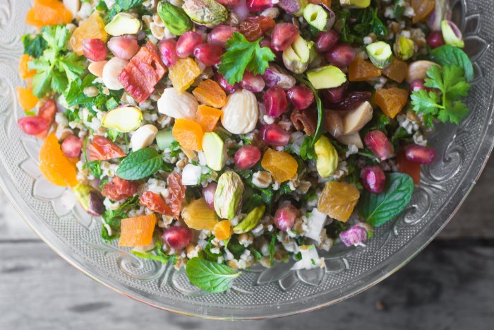 - El tabulé generalmente contiene tomates, pero los dejé fuera de esta receta porque pensé que su sabor podría chocar con los frutos secos. Siéntase libre de agregarlos si lo desea.