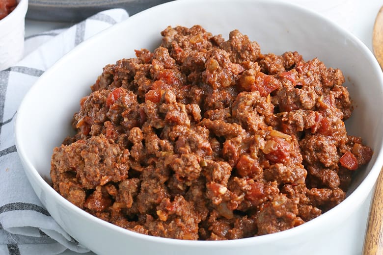 Prefiero usar carne molida magra, por lo que no es necesario escurrir al final. Necesitas un poco de grasa para evitar que se pegue y mantener la mezcla jugosa, pero no quieres que la grasa se acumule encima.